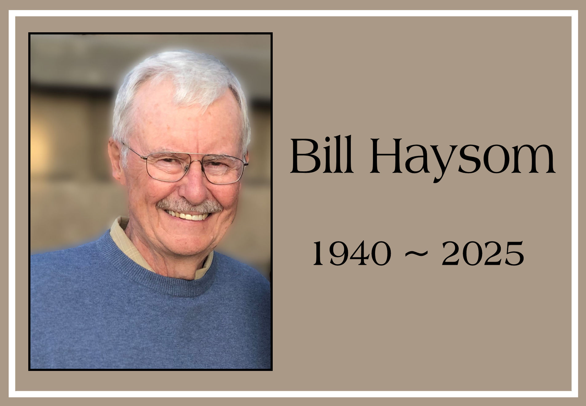 BILL HAYSOM 1940 ~ 2025 Surrounded by love, William “Bill” Lawrence Haysom of Medicine Hat, Alberta, passed away after a brief illness, on Friday, August 8, 2025, at the age of 85 years. Bill lived a full and dedicated life, replete with compassion and kindness. Bill was a devoted husband to Nina, wife of 55 […]